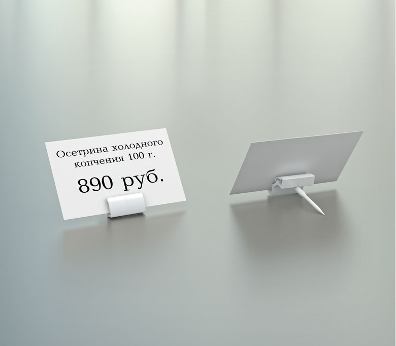 Универсальный ценникодержатель-иголка для крепления ценников из бумаги под разными углами. Также может использоваться как задняя подставка ценника. Длина иголки - 35 мм. Ширина держателя - 19 мм.