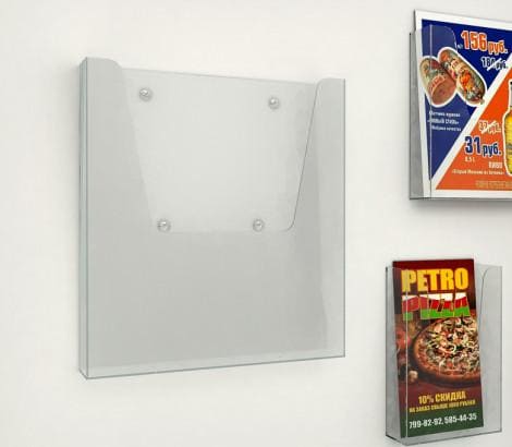 Настенные держатели для печатной продукции Предназначены для использования на информационных стендах , для размещение книги жалоб и предложений, многостраничных прайсов, перечней услуг и т.д. Или использоваться самостоятельно с креплением непосредственно на стены, в местах наибольшей проходимости клиентов Вашей компании для распространения печатной продукции (каталоги, листовки, буклеты, бланки и т. д).