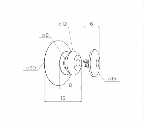 Ø шляпки пистона 15 мм Длина пистона 6 мм.