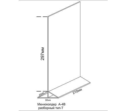 ПРОЗРАЧНЫЙ МЕНЮХОЛДЕР, КЛАСИЧЕСКОГО ВИДА. СОСТОИТ ИЗ ДВУХ ЧАСТЕЙ, Т-ОБРАЗНОГО ПЛАНШЕТА И НИЖНЕГО ДЕРЖАТЕЛЯ, ТРЕУГОЛЬНОЙ ФОРМЫ.