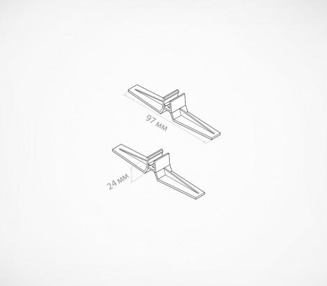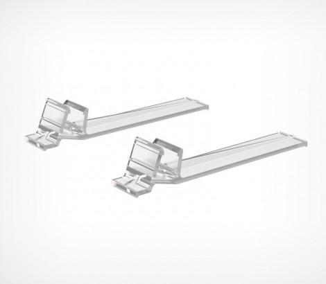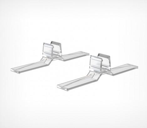 Держатель рамки под углом 90° или с небольшим наклоном 75° к поверхности. Используется для крепления пластиковой рамки установленной на ровной поверхности (стол, полка). Этот вид стоек широко используется в качестве ценникодержателя или информационных носителей. Рекомендуется использовать не менее 2-х держателей для крепления каждой рамки.