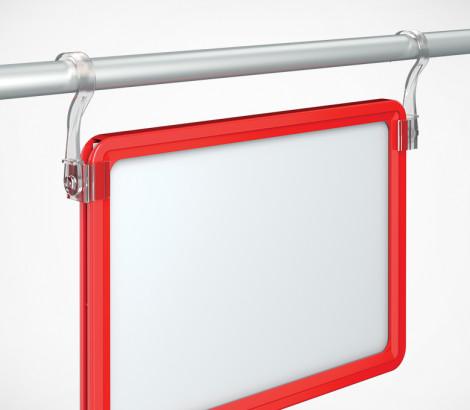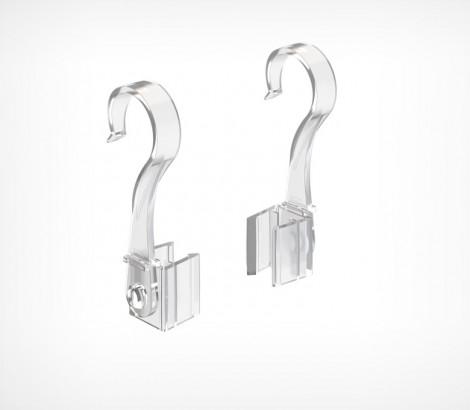 Крючок с подвижным основанием для подвешивания пластиковых рам на трубу до Ø 20 мм. Также позволяет подвесить рамку на металлические покупательские корзины и подвесные профили. Закрепляется с боковой стороны рамки. Для подвешивания одной рамки необходимо два крючка разной ориентации (левый и правый).