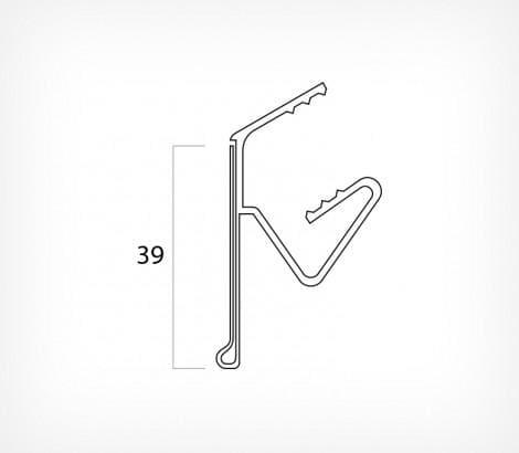 Ценникодержатель для крепления на деревянные полки и полки из ДСП или МДФ. Конструкция заднего крепления позволяет одевать профиль на полки толщиной 14-30 мм. Высота вставляемого ценника - 39мм