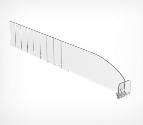 Разделитель DIV60-BT30 выс.60 мм с передним огран.30 мм 185-385мм — пластиковый разделитель с передним ограничителем. Имеет насечки с шагом 25 мм для обламывания по длине, материал: прозрачный ударопрочный пластик. Применение: для организации выкладки небольших лёгких товаров, таких как сигареты, лекарства, парфюмерия и косметика.