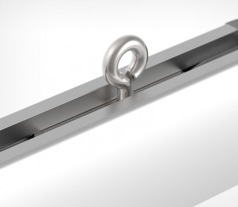 Металлический крючок-петля крепится в верхнем пазе профиля UNITRACK. Крючок петля фиксируется в профиле поворотом винта-петли, что позволяет быстро передвигать его и надежно фиксировать. Рекомендуется использовать по 2 крючка-петли на профиль при общем весе профиля с подвешенными рамками или плакатом от 5 до 10 кг.