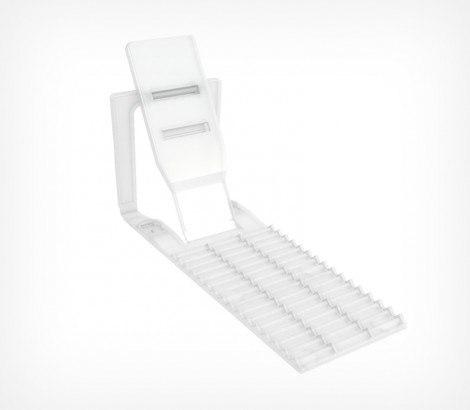Пластиковая задняя опора FLEX-BACK имеет удлиненную переднюю ребристую часть для увеличенной загрузки товарами. Спинка опоры имеет два положения наклона: 60° и 80°. Для более плотного крепления на полке возможна установка демпферов (поставляются отдельно). Для фиксации на металлических полках может быть укомплектована магнитами (поставляются отдельно).