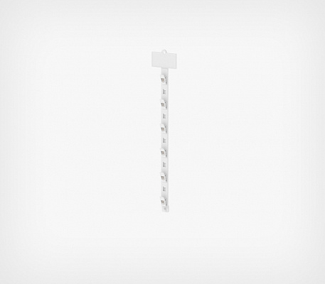 Топпер для подвесной пластиковой страйп-ленты. Предназначен для крепления пластиковой страйп-ленты и размещения ценников или рекламных наклеек. Используется вместе со страйп-лентой для товаров в небольшой упаковке без отверстия для подвеса. В верхней части топпера предусмотрено отверстие для крепления с помощью специального металлического крючка для страйп-лент или хомута.